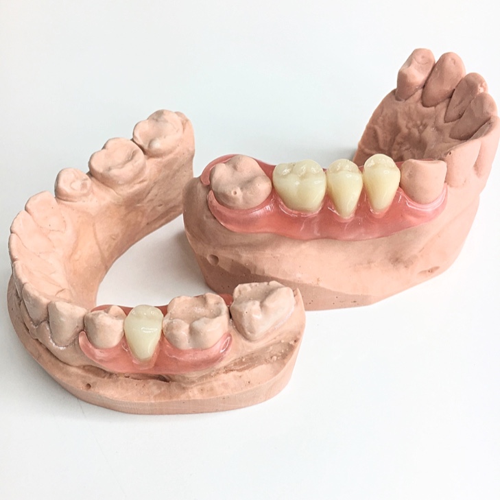 Idealne rozwiązanie w przypadku pojedynczych lub małych braków zębowych. Na zasadzie "wkliknięcia" klipsa za pomocą klamer na sąsiednie zęby własne uzyskujemy świetne utrzymanie w jamie ustnej.